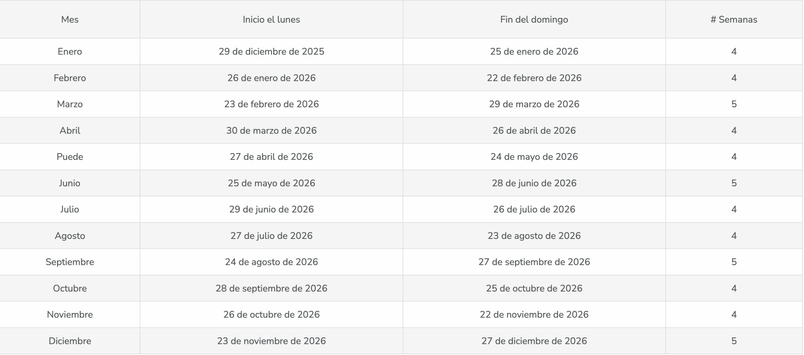 La siguiente tabla muestra las semanas de comisión para 2026, con las fechas de pago de comisiones relacionadas.